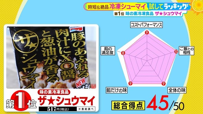 そして第1位は、味の素冷凍食品の『ザ★シュウマイ』(税込517円 ※番組調べ)。