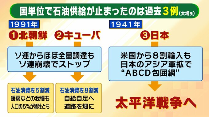 国単位で石油供給が止まったのは過去に3例(ポスト石油戦略研究所・大場紀章氏)。