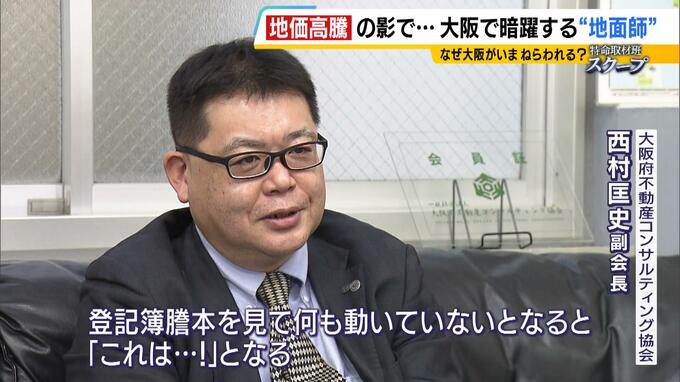 地価の上昇が続くなかでも、大阪は東京よりも放置された土地や建物がまだ多いことから、こういった物件が地面師の標的になる可能性が高いと話します。