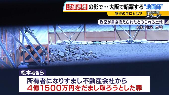 狙われたのは、大阪市北区中津の約800平方メートルの土地と建物でした。松本被告らは所有者になりすまし、不動産会社から4億1500万円をだまし取ろうとした罪などに問われています。