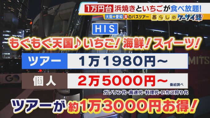 このツアーの料金は1万1980円から。個人で行くと約2万5000円かかるので(※番組調べ)、ツアーが約1万3000円ほどお得です!