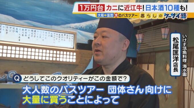 (いけす活魚料理海水園 松尾匡洋店長)「大人数のバスツアー、団体さん向けに大量に買うことによって、ある程度の値段でクオリティーを出せています」