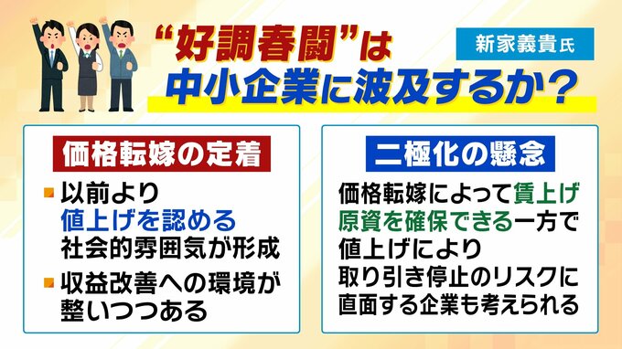 一方、懸念されるのが「二極化」。価格転嫁によって賃上げ原資を確保できる一方、値上げによる取引停止リスクに直面する企業も考えられると言います。