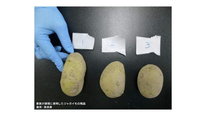 奈良県薬務・衛生課によると、ジャガイモの発芽部分や、日光や照明に当たって緑色に変色した部分は、有毒成分であるソラニン類が多く含まれているということです。