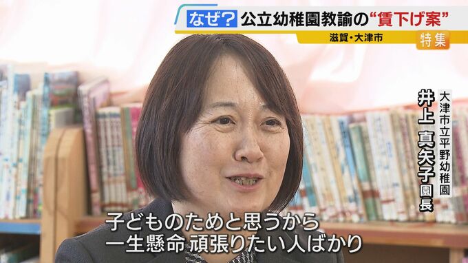 (大津市立平野幼稚園 井上真矢子園長)「子どものためと思うから一生懸命頑張りたい人ばかり。ぎりぎりのところで一生懸命頑張って仕事をしている。仕事として認められていないと職員が感じることで、退職を考えなければいいのになと願っています」