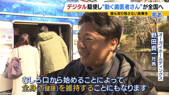 (野田真一社長)「今まで歯とか口とかは見落とされがちで、なかなか命に直結しないということで、後回しになっていたと思うんですけど、むしろ口から始めることによって全身(の健康)を維持することにもなります