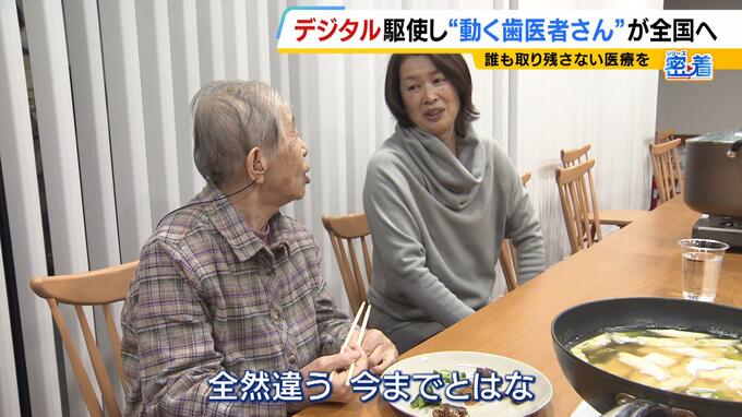 完成した入れ歯を装着して食事 91歳女性「今までと全然違う。食べられるわ!」