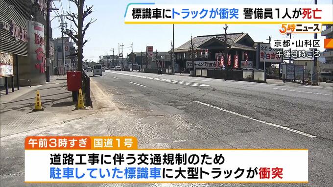 大型トラックが標識車に衝突…押し出された標識車にはねられ男性2人死傷 トラック運転の男逮捕 警察は居眠り運転の可能性もあるとみて捜査 京都・山科区 2026年3月24日(火) 17:35 国内 交通規制のためとまっていた標識車に大型トラックが衝突。路上で業務にあたっていた男性が事故に巻き込まれ死亡しました。 警察によりますと、3月24日午前3時すぎ、京都市山科区の国道1号で道路工事に伴う交通規…