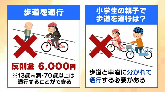 違反行為のなかで、ついうっかりやってしまいそうなのが自転車の歩道通行です。