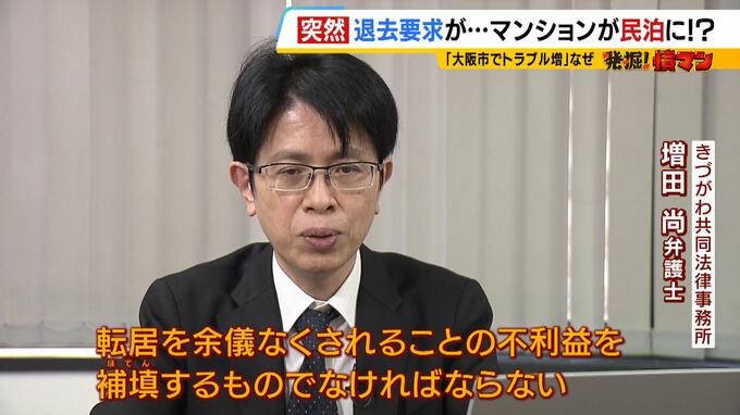 (増田尚弁護士)「引っ越し代であったり、転居先を確保するときの初期費用ですね。敷金であったり、火災保険料とか仲介手数料とか。転居を余儀なくされることの不利益を補填するものでなければならない」