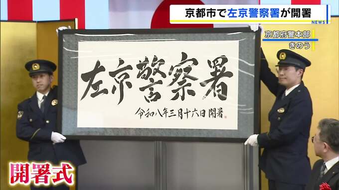 京都府警「左京警察署」が開署 業務効率化のため下鴨・川端の2つの署が統合 「地域住民の期待と信頼に応えられるよう努力」当面の間は下鴨が本庁舎、川端が分庁舎 2026年3月27日(金) 10:25 国内 京都市で2つの警察署が統合し、新たに「左京警察署」が開署しました。 警察官ら約90人が集まり行われたのは、「京都府左京警察署」の開署式です。 左京区ではこれまで、北部は「下鴨警察署」、南部は「川端警察…