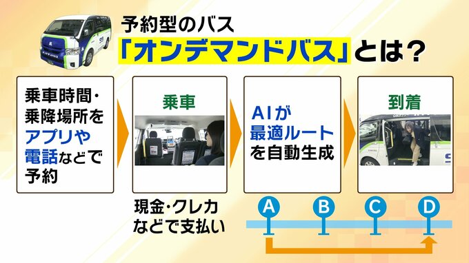 利用方法は、アプリやLINE、電話で予約。時刻表がないため、乗りたい時間に近い時間を予約します。