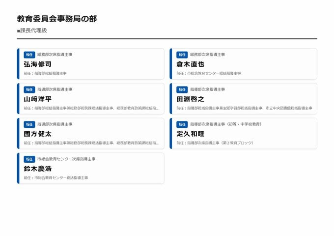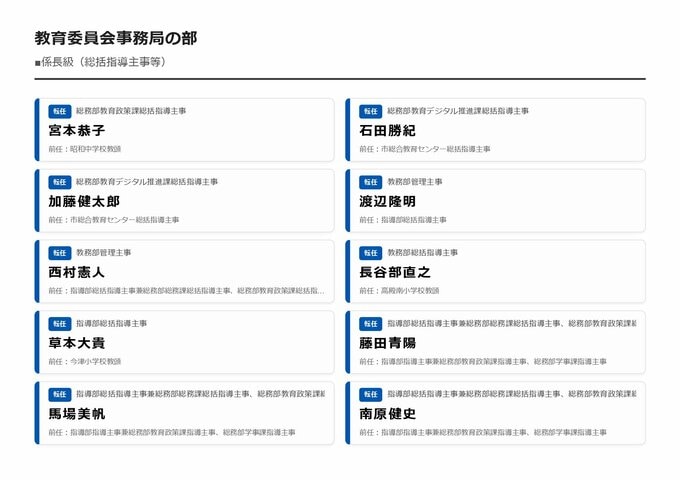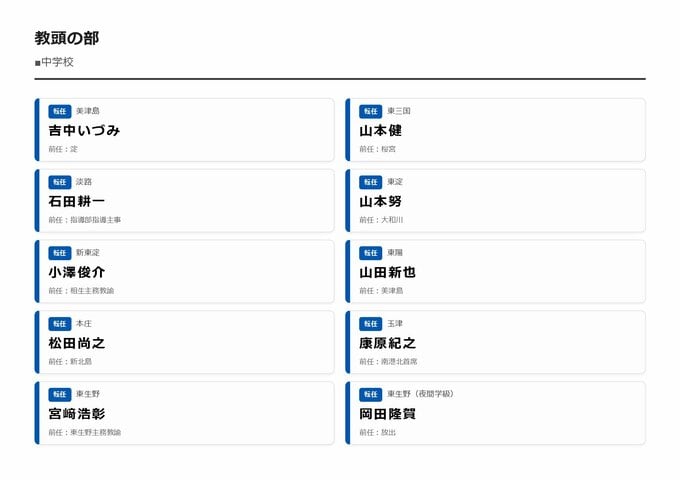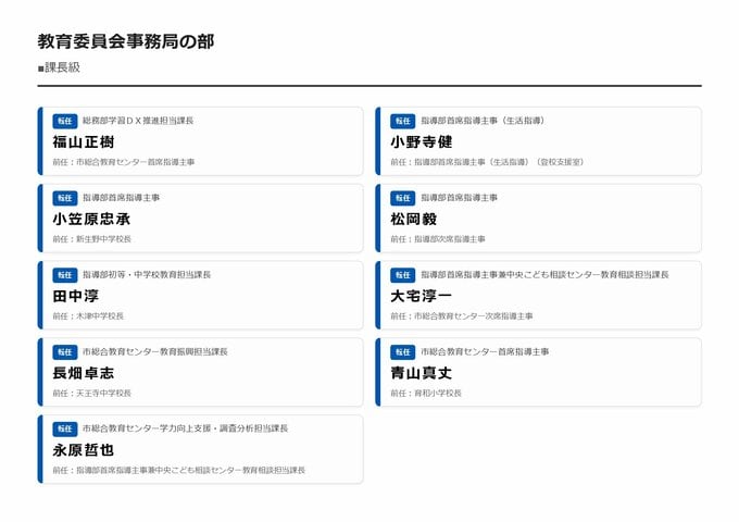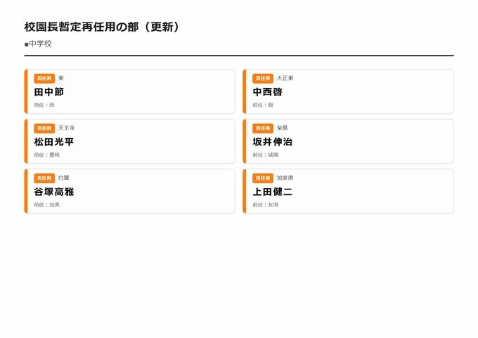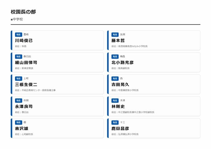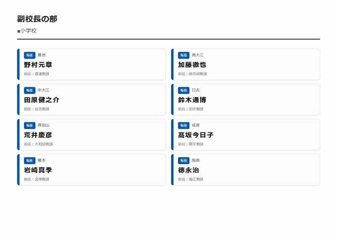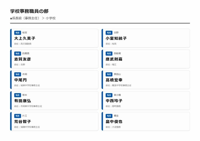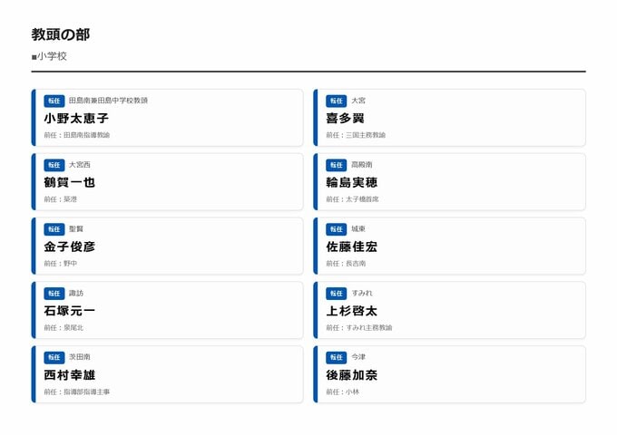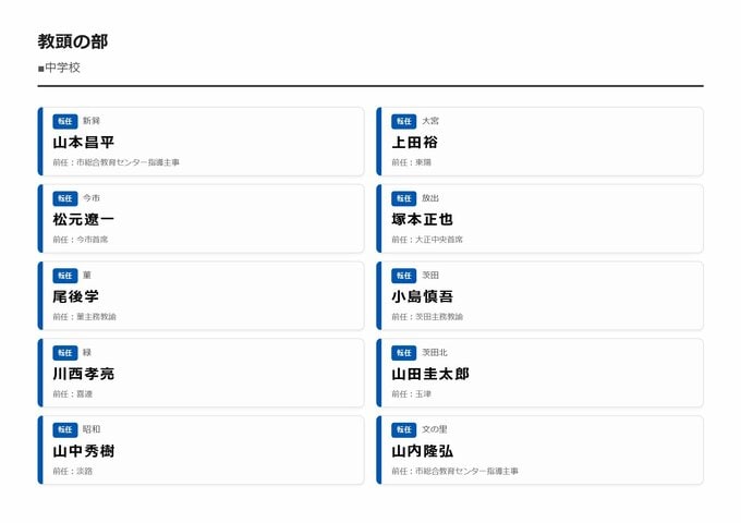 MBS編集部セレクト 【大阪市・教職員人事異動2026】校長、教頭先生などの新任・転任「あの先生どこ行ったん?」全掲載(小学校、中学校、義務教育学校、教育委員会など) 2026年3月30日(月) 16:11 国内