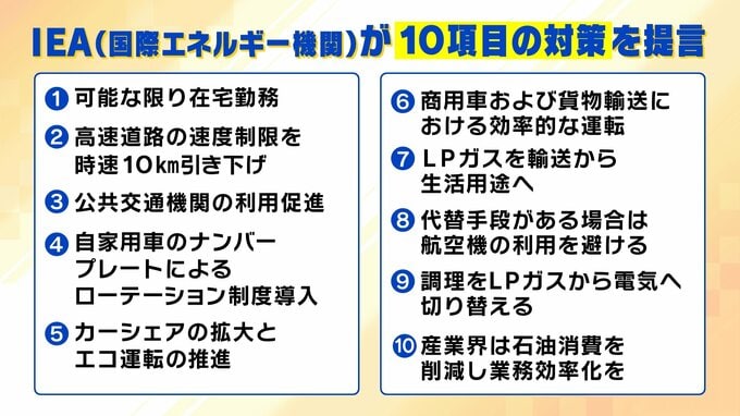 また、IEA(国際エネルギー機関)は、消費者に与える影響を緩和するために「10項目の対策」を提言。