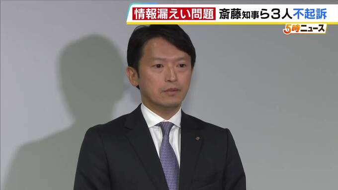 斎藤知事ら3人を『不起訴処分』兵庫県・元県民局長の私的情報漏えい問題で 告発した上脇大学教授は「納得できない」検察審査会への申し立て検討 2026年3月27日(金) 17:33 国内 兵庫県の元県民局長の私的な情報が漏えいした問題で、斎藤知事ら3人を不起訴処分です。 兵庫県の斎藤元彦知事のパワーハラスメントなどを告発した元県民局長の私的な情報が外部に漏えいした問題では去年、県の第…