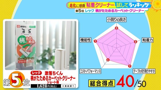 第5位は、レックの『激落ちくん 柄がたためるカーペットクリーナー ショート柄』(税込1,628円 ※番組調べ)。