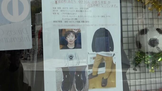(小学校付近のスポーツ用品店)「31日に30代ぐらいの女性が紙を持って来ました。うちの母親が受け取って、それやったら店に貼っておこうかと。一刻も早く解決してほしい。無事でいてほしい」