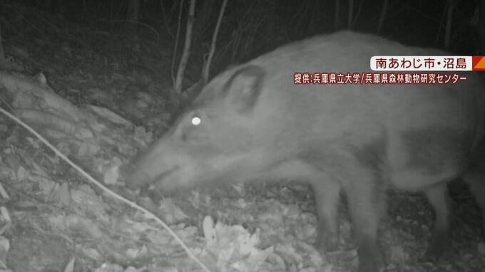 鼻先で地面を掘り進める大きな獣。野生のイノシシです。いま沼島ではイノシシが大繁殖してしまっているというのです。