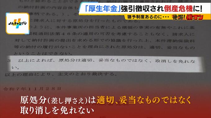 (厚生労働省・社会保険審査会の裁決書)「原処分(差し押さえ)は適切、妥当なものではなく、取り消しを免れない」