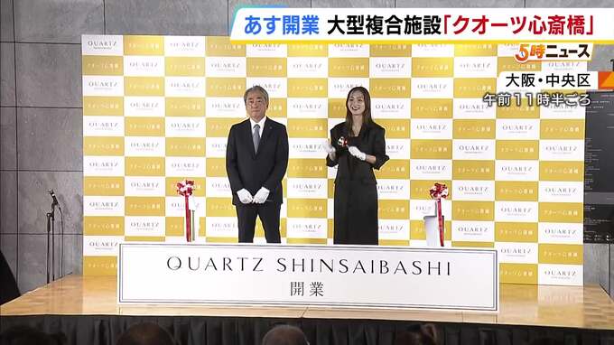 「まちのにぎわい生み出す拠点として成長していきたい」あす開業予定の「クオーツ心斎橋」開業セレモニー 地下2階・地上28階の心斎橋エリア最大級の複合施設 2026年4月24日(金) 18:02 国内 大阪・心斎橋にあす25日開業予定の大型複合施設「クオーツ心斎橋」。24日に開業セレモニーが行われました。 開業セレモニーが行われたのは大阪・心斎橋の御堂筋沿いにできた「クオーツ心斎橋」。大阪メトロ・心斎…