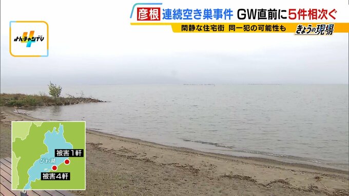 4軒が被害に遭ったのは、滋賀県彦根市新海浜。目の前に琵琶湖が広がる非常に静かな住宅街です。