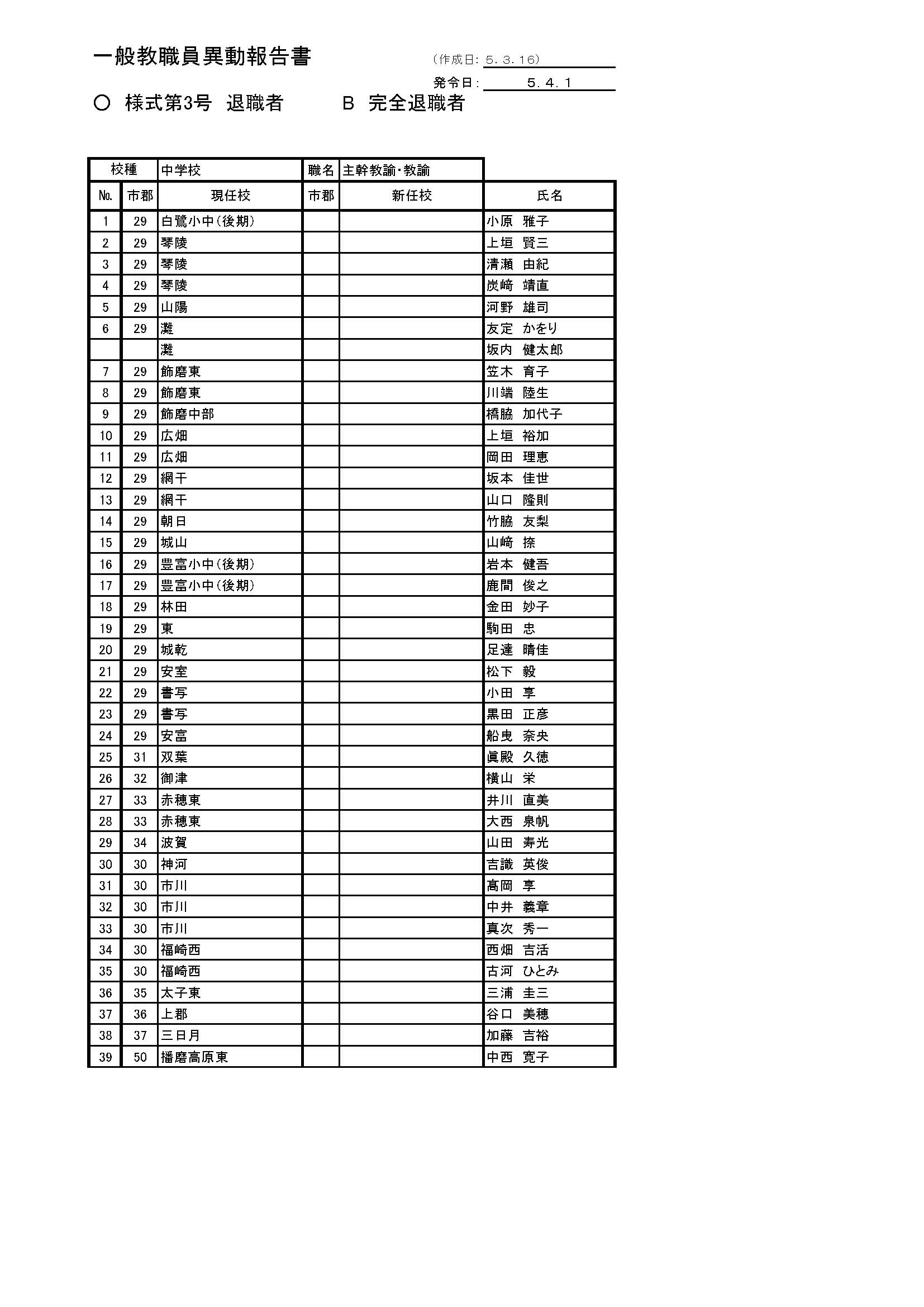兵庫県教職員人事異動2023「あの先生はどこへ?」中学校・県立高校・特別支援学校の異動【全件掲載】 2023年4月2日(日) 06:00 国内 あの先生はどこへ?【播磨西地区の中学校】 播磨西地区の中学校の人事異動 播磨西地区の中学校の人事異動 播磨西地区の中学校の人事異動 播磨西地区の中学校の人事異動 播磨西地区の中学校の人事異動 播磨西地区の中学校の人事異動 播磨西地区の中学校の人事異動 播磨西地区の中学校の人事異動 播磨西地区の中学校の人事異動 播磨西地区の中学校の人事異動 播磨西地区の中学校の人事異動 播磨西地区の中学校の人事異動 播磨西地区の中学校の人事異動 播磨西地区の中学校の人事異動 播磨西地区の中学校の人事異動 播磨西地区の中学校の人事異動