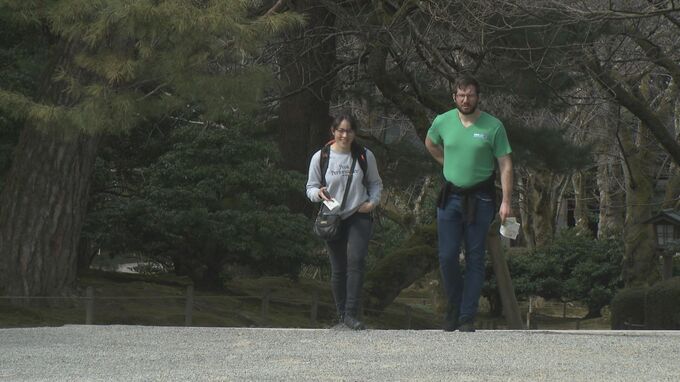 石橋アナ「正午過ぎの兼六園です。手元の温度計は20度を超えています。今、うっすらと日が差していて観光客の方を見ると上着を脱いで半袖の方もいますね。そして北陸地方で春一番が観測しました」