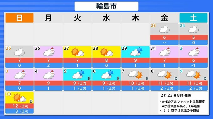 最高気温は平年並みか平年より低いでしょう。厳しい寒さが続きますので体調管理には十分にご注意ください。