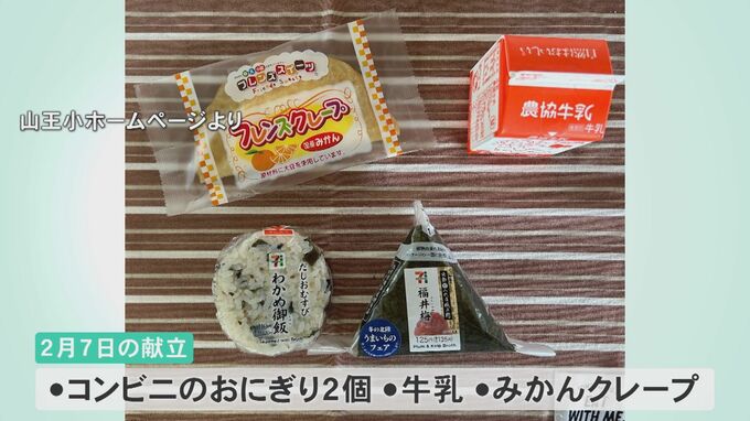 七尾市の小学校では7日に給食が再開されましたが、初日の献立はコンビニのおにぎり2個と牛乳、みかんクレープでした。