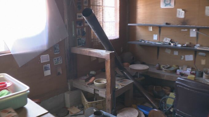 素朴で力強い美しさを醸し出す黒や灰色の色合いは、窯の中を酸欠状態にすることで生まれます。その大事な窯は、去年5月に起きた震度6強の地震でも崩れ、再建したばかりでしたが、今回の地震でまた崩れてしまいました。