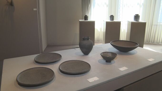 東京・銀座で開かれた4人の陶芸家による作品展。篠原さんは、地震で壊れることを免れた26点を出品することができました。