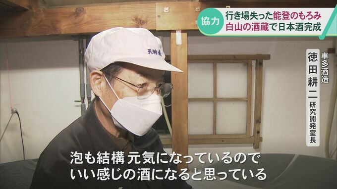 地震で被災し、酒造りが困難となった石川県能登町の酒蔵。その蔵に残っていたもろみをもとに作られた日本酒が、同じく石川県の白山市の酒造で完成しました。