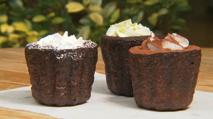 「いただきます!香ばしいカヌレの味とふんわりとしたクリームがとてもおいしい」