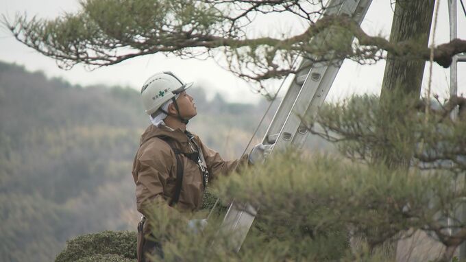 作業は200年以上前に建てられた七福神山の巣ごもりの松から始められました。