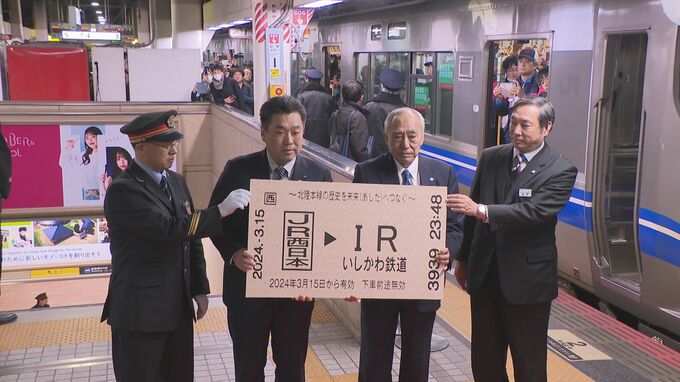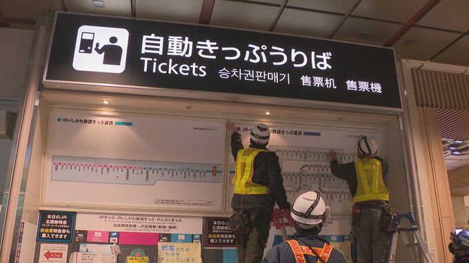 新幹線の延伸に合わせて、JR北陸線は石川県内がIRいしかわ鉄道に、福井県内はハピラインふくいに経営が引き継がれます。金沢駅では最終列車の出発後に、行き先表示や運賃表を交換する作業も行われました。