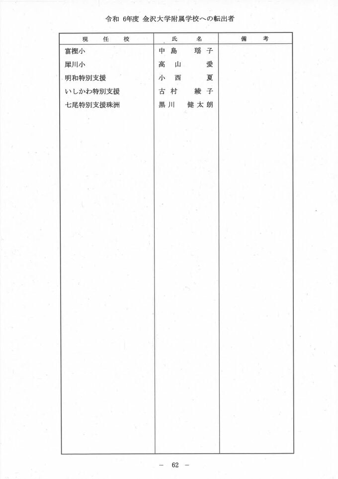石川県 教職員人事異動一覧2024「あの先生はどこへ?」小学校・中学校・高校・特別支援学校