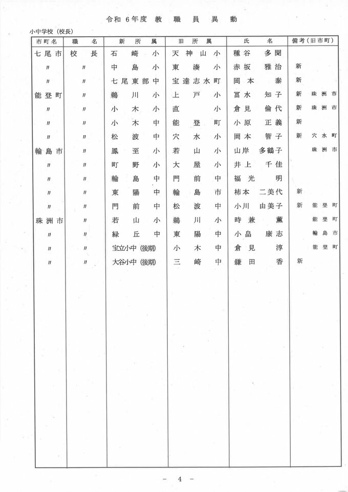 石川県 教職員人事異動一覧2024「あの先生はどこへ?」小学校・中学校・高校・特別支援学校 2024年3月22日(金) 11:14 石川 異動する教職員一覧【小中学校 校長】 小中学校 校長(石川県教委発表) 小中学校 校長(石川県教委発表)