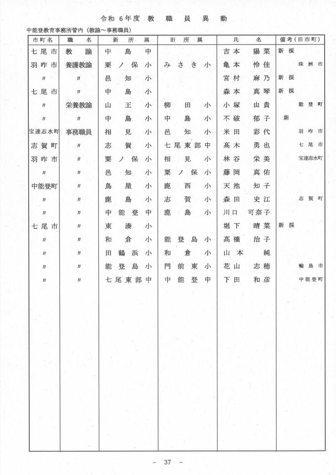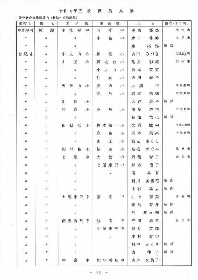 石川県 教職員人事異動一覧2024「あの先生はどこへ?」小学校・中学校・高校・特別支援学校 2024年3月22日(金) 11:14 石川 小中学校 教諭・養護教諭・栄養教諭・事務職員(中能登教育事務所管内) 小中学校 教諭・養護教諭・栄養教諭・事務職員(中能登教育事務所管内) 小中学校 教諭・養護教諭・栄養教諭・事務職員(中能登教育事務所管内) 小中学校 教諭・養護教諭・栄養教諭・事務職員(中能登教育事務所管内)