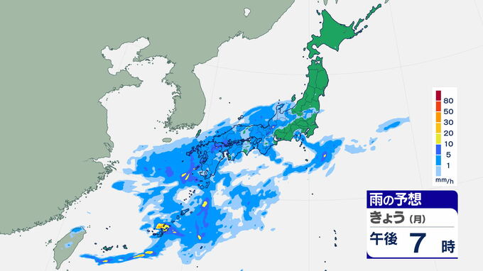 8日月曜日夜には低気圧は発達しながら九州南部から北東に進む見込みです。日中から夜にかけては西日本を中心に雨が強まりそうです。