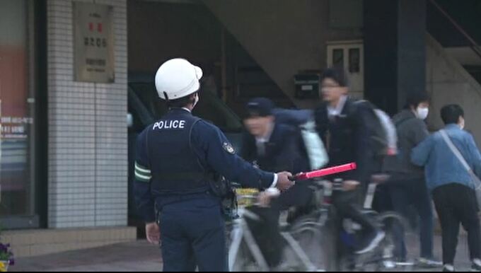 春の全国交通安全運動に合わせ、石川県内の通学路では15日一斉に警察官が街頭に立ち、登校中の子どもたちに交通安全を呼びかけました。