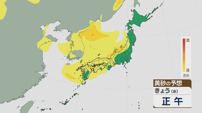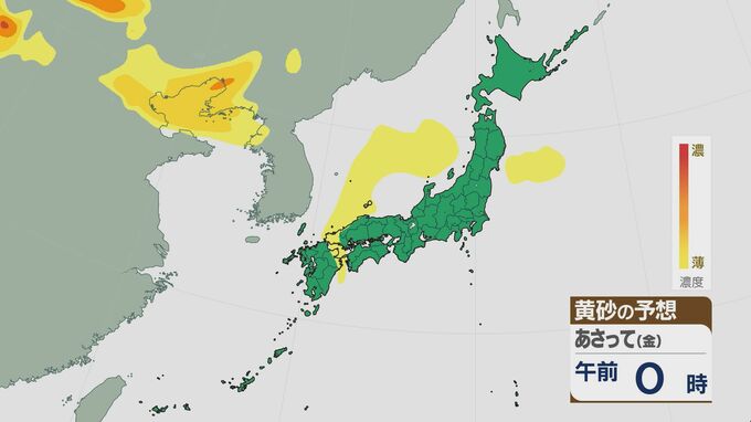 18日の日中は、九州北部や中国地方で再び黄砂が飛んでくる見込みです。