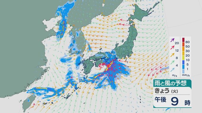 その後雨雲はゆっくりとしたペースで東へと進み、23日の夜には近畿南部で雨が強まる見込みです。