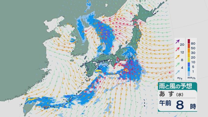 23日は四国や九州で南から暖かく湿った空気が流れ込み雨が降る見込みです。愛媛県の南予では、24日午前6時までの24時間での予想降水量が80ミリとなっています。