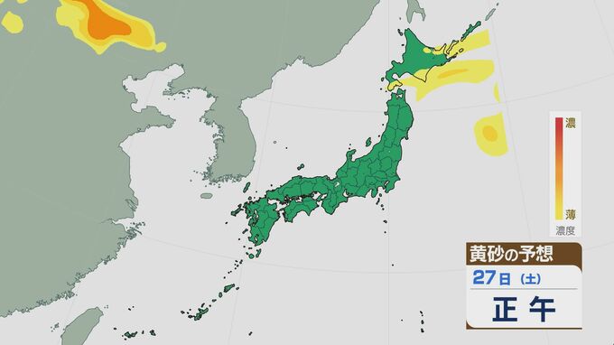 27日土曜日の未明から朝は、北海道の東部などで黄砂が残りそうですが、日中にはおおむね収束する見込みです。