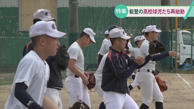 15日、航空石川の野球部員42人が春の県大会に向け輪島市に戻ってきました。寮の一部が使えるようになったためです。輪島の学校では練習以外の活動はまだ再開していないため、部員たちは東京の青梅キャンパスとの間をオンラインでつなぎ、授業を受けています。