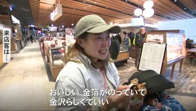 お客さん「おいしい。金箔が乗っていて金沢らしくて良い。」
