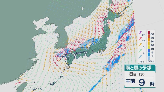【画像】8日(水)正午までの天気の予想と雨風の予想