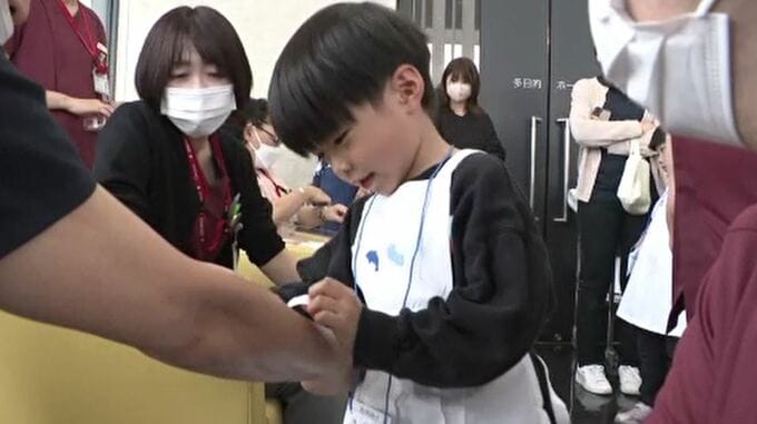 七尾市の恵寿総合病院で行われた「プチナース看護体験」。市内のやまとこども園とあさひこども園の園児20人が真っ白なエプロンに身を包み、「ちびっこナース」に大変身!現役の助産師から手洗いの大切さについて説明を受けたあと、傷口に絆創膏を貼る練習や、聴診器を使って身体から聞こえてくる音に耳を傾けていました。