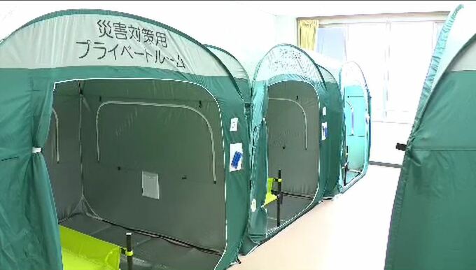 「教室内に設置されたテント。この宿泊拠点の最大の特徴は空調やお風呂が利用でき、連泊が可能となったことです」