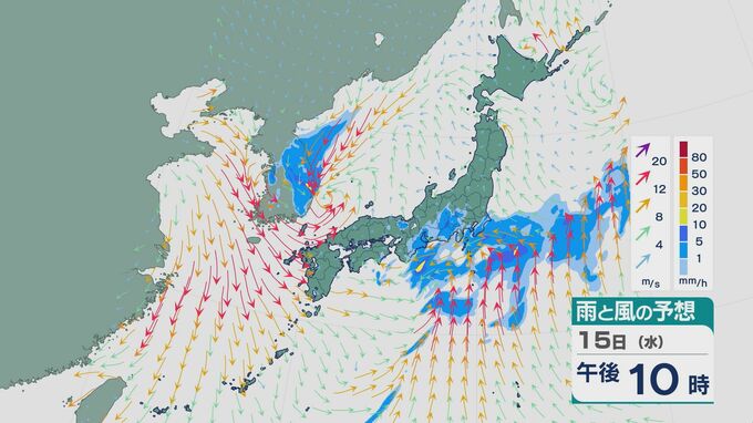15日夜のはじめごろから16日の未明にかけては、東海や関東で雨が降る見込みです。